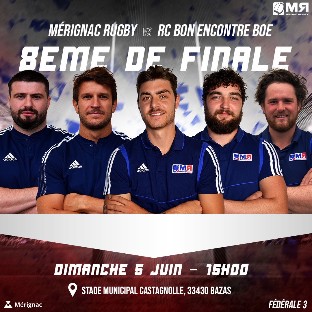 Un gros week-end en perspective pour le club de Mérignac Rugby ! C’est la dernière étape et le dernier match de l’année pour nos juniors. Après avoir gravit un à un les échelons, les jeunes sont en Finale Nouvelle Aquitaine. Un très beau parcours et un investissement collectif qui mériterait un 2ème titre pour cette saison ! La finale se déroulera samedi 4 juin à 17h00 sur le stade municipal d’Ychoux. Venez encourager l’équipe qui elle va tout donner pour décrocher la vitctoire.
